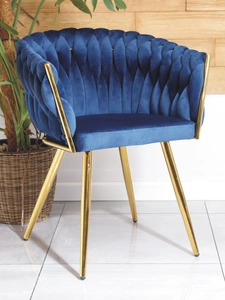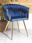 Welurowe krzesło glamour ROSA 1 | granatowa plecionka, złoty stelaż