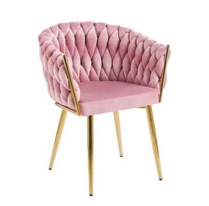 Welurowe krzesło glamour ROSA 2 | różowa plecionka, czarny stelaż