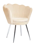 Fotel muszelka SHELL | beżowy welur, chromowane nogi