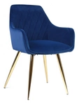 Tapicerowane krzesło z podłokietnikami CARBO | granatowy welur, złote nogi