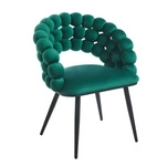 Nowoczesne krzesło LUNA w głębokim zielonym kolorze to propozycja dla miłośników elegancji i wyjątkowego designu. Oryginalne kuliste oparcie oraz solidne czarne nogi tworzą harmonijne połączenie komfortu i stylu, idealne do nowoczesnych wnętrz.