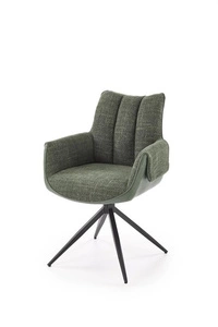 Krzesło K579 w zielonym kolorze to połączenie elegancji i funkcjonalności. Tapicerowane tkaniną i eco skórą, z funkcją obracania i stalową podstawą, doskonale sprawdzi się w jadalni, salonie lub gabinecie.