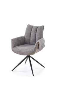 Krzesło K571 w popielatym kolorze to elegancki model z funkcją obracania, który łączy wygodę i nowoczesny wygląd. Tapicerowane miękką tkaniną i osadzone na stalowej podstawie, sprawdzi się w jadalni, salonie lub gabinecie.