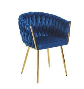 Welurowe krzesło glamour ROSA 1 | granatowa plecionka, złoty stelaż
