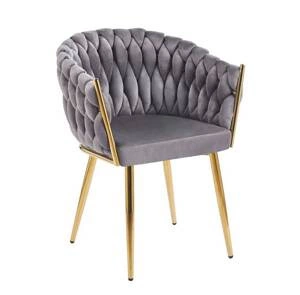 Krzesło kubełkowe welurowe glamour ROSA 1 | czarna plecionka, złoty stelaż