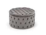 Pufa BELIA w kolorze szarym tapicerowana miękką tkaniną velvet