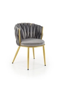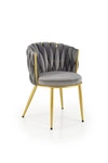 Krzesło K517 w kolorze popielatym i złotymi nogami to stylowy element, który wprowadzi elegancję i nowoczesny design do każdego wnętrza. Kolor popielaty (BLUVEL 14) z elementami złota tworzy luksusowy, a zarazem funkcjonalny dodatek do jadalni lub salonu.