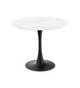Okrągły stół AMBROSIO z blatem w kolorze biały marmur i czarną podstawą
