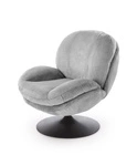 Fotel wypoczynkowy na czarnej okrągłej podstawie SHELL w popielatym odcieniu tkaniny LAPIT