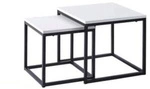 Zestaw dwóch ław OREO w kolorze trawertyn/biały to nowoczesne połączenie elegancji i funkcjonalności. Blaty z MDF w okleinie trawertyn oraz białe stalowe nogi tworzą efektowny komplet do salonu.