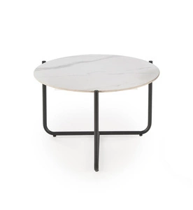 Ława KIM z białym marmurowym blatem i czarnym stelażem