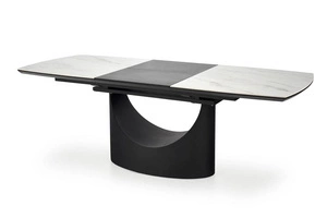 Rozkładany stół OSMAN w kolorze biały marmur/czarny z blatem z ceramiki. Idealny do salonu czy jadalni, ten elegancki stół wprowadzi do Twojego wnętrza nutę luksusu i nowoczesności.