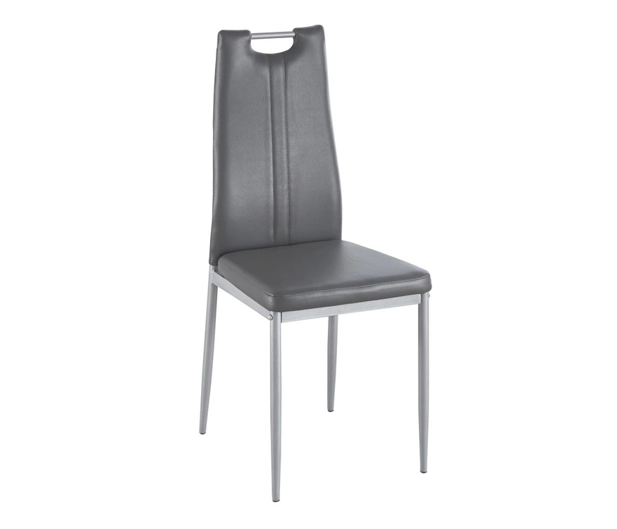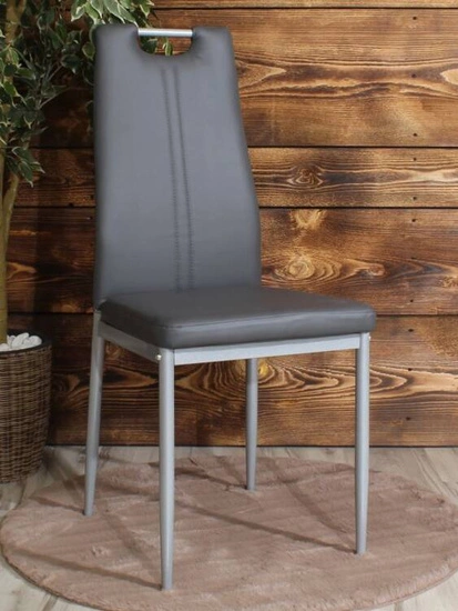 Krzesło wykonane ze stali malowanej proszkowo oraz skóry ekologicznej. Polecamy ten model szczególnie do jadalni. Bogaty wybór kolorów sprawia, że krzesła będą idealnie pasowały do reszty mebli znajdujących się w pomieszczeniu. Krzesła posiadają metalową rączkę do góry przy oparciu, która nie tylko jest świetną ozdobą ale jednocześnie sprawia, że mebel ten staje się niezwykle funkcjonalny. Tapicerka krzesła RITA wykonana została z wysokiej jakości skóry ekologicznej posiadającej poprzeczne przeszycia na oparciu, które nadają ciekawego wyglądu. Ekoskóra oprócz eleganckiej prezencji cechuje się dużą wytrzymałością i łatwością w czyszczeniu, dzięki czemu mebel będzie służył przez wiele lat.