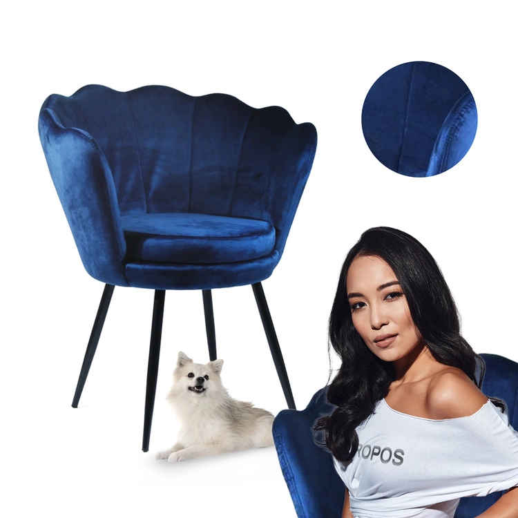 Fotel muszelka SHELL| granatowy welur, czarne nogi