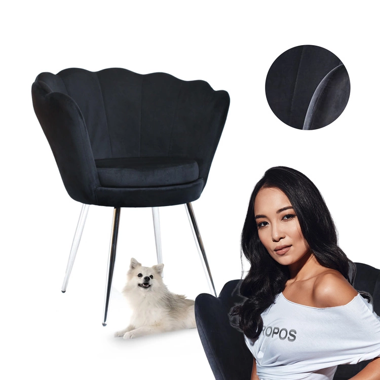 Fotel muszelka SHELL | czarny welur, chromowane nogi