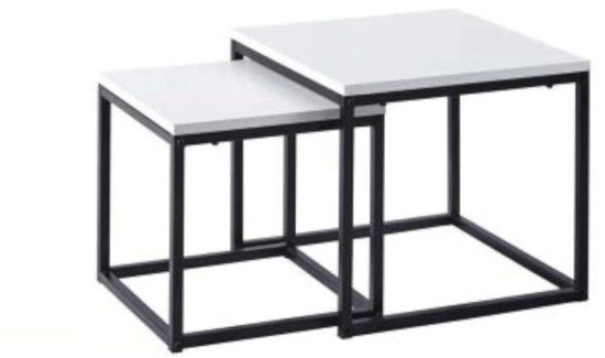 Zestaw dwóch kwadratowych stolików RIMIA z białym blatem na czarnym stelażu