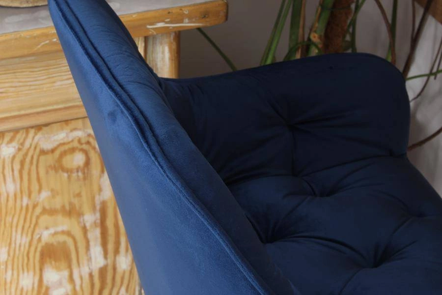 Krzesło fotelowe z podłokietnikami AURORA | granatowy welur, pikowana tapicerka