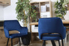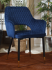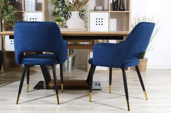 Opinie o Eleganckie krzesło do jadalni z przeszyciami FRANCO A granatowe na czarno-złotych nogach
