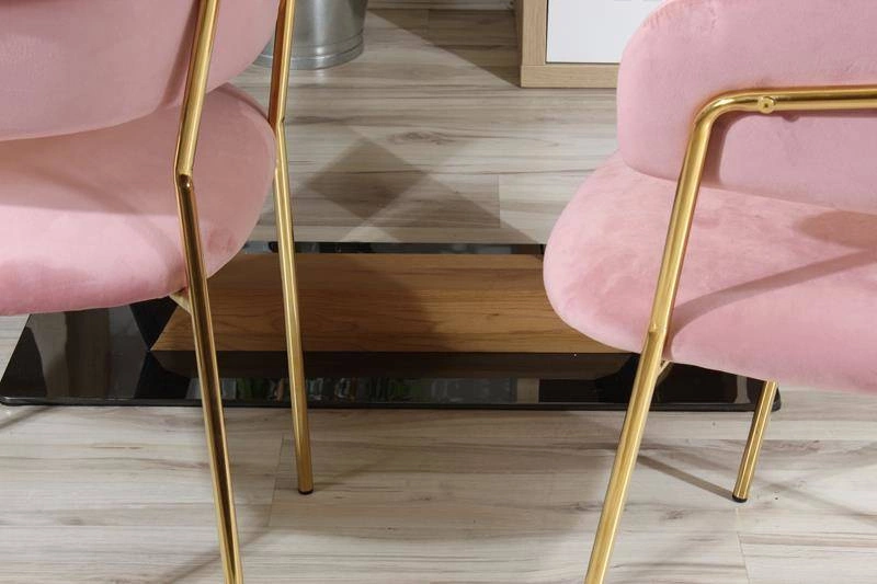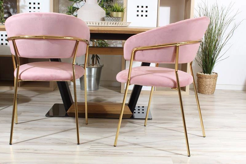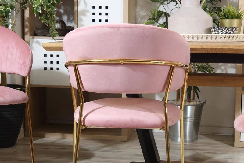 Welurowe krzesło do jadalni w stylu glamour MARGO 2 różowe na złotym stelażu