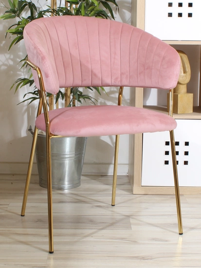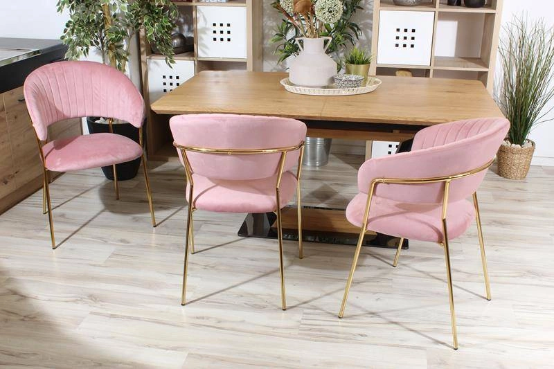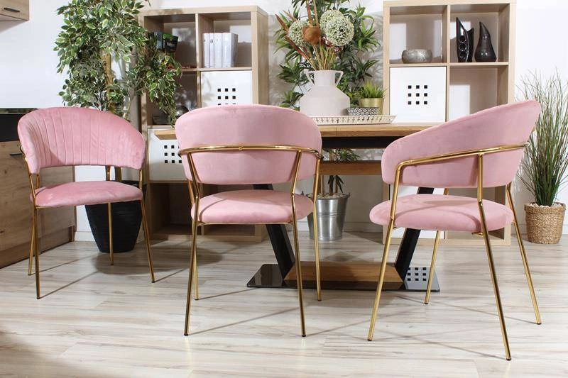 Opinie o Welurowe krzesło do jadalni w stylu glamour MARGO 2 różowe na złotym stelażu