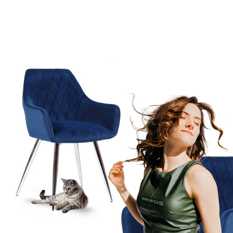 Tapicerowane krzesło z podłokietnikami CARBO | granatowy welur, chromowane nogi
