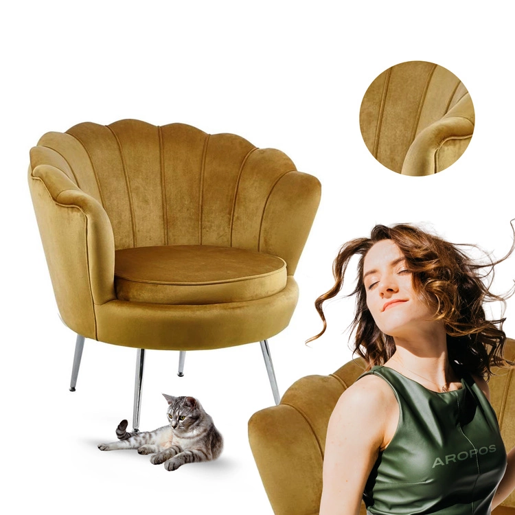 Welurowy fotel muszelka VIDAL | miodowa tapicerka, srebrne nóżki