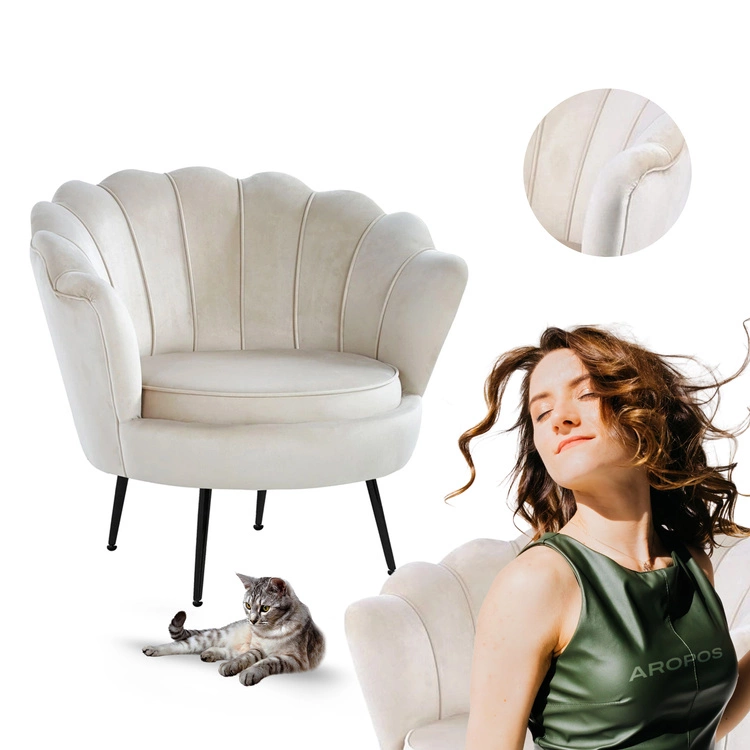 Fotel muszelka VIDAL w kolorze beżowym to wyjątkowe połączenie subtelnej elegancji i nowoczesnego designu. Jego charakterystyczne oparcie w kształcie muszli otula sylwetkę, zapewniając wygodne podparcie i tworząc przytulne miejsce do odpoczynku. Miękka poduszka na siedzisku zwiększa komfort, a aksamitna w dotyku tapicerka welurowa w ciepłym odcieniu beżu dodaje wnętrzu przytulności i luksusu.