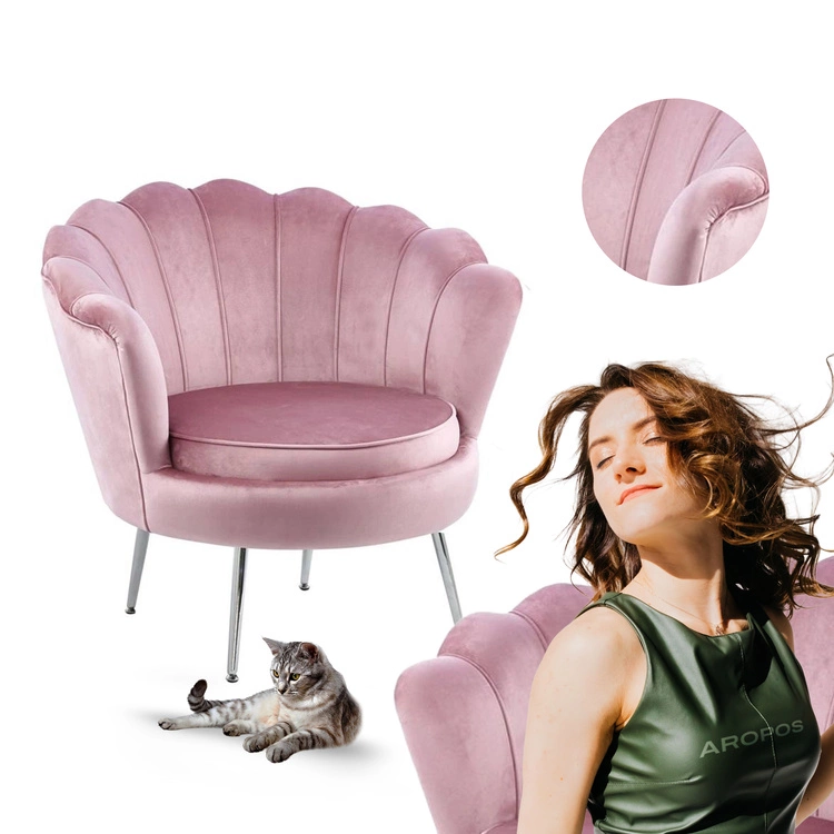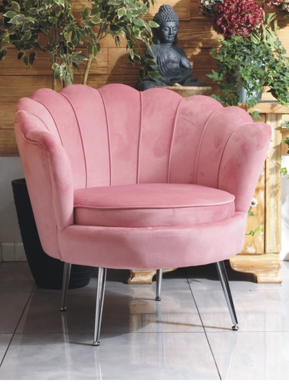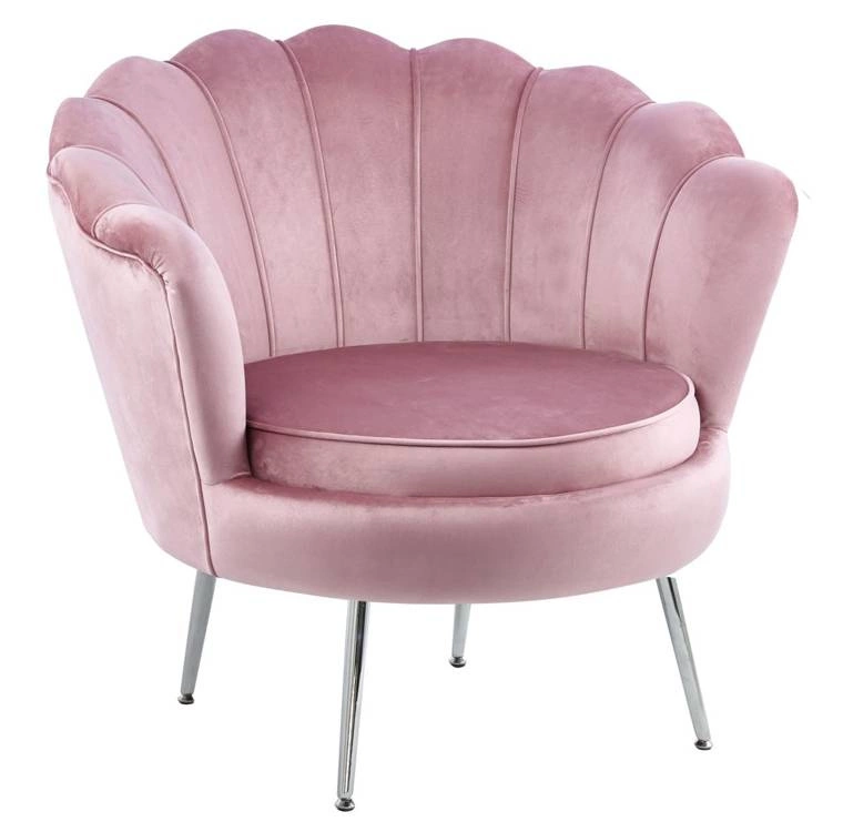 Opinie o Welurowy fotel muszelka VIDAL | różowa tapicerka, srebrne nóżki