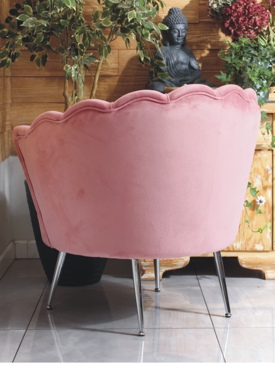 Welurowy fotel muszelka VIDAL | różowa tapicerka, srebrne nóżki
