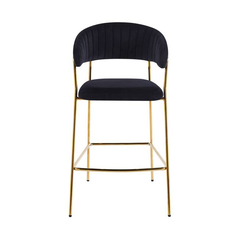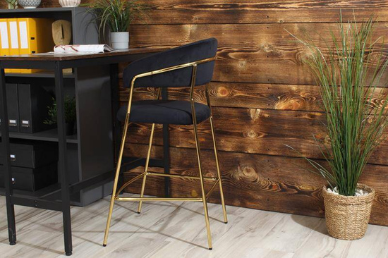 Krzesło barowe w stylu glamour MARGO czarny welur /złoty
