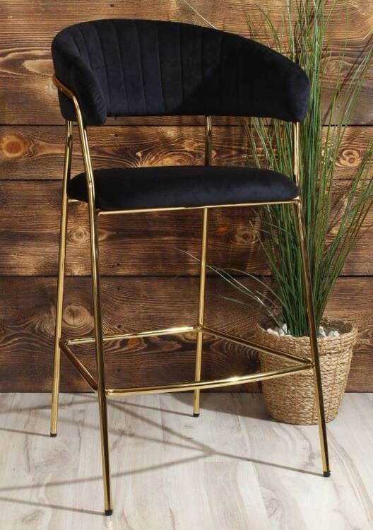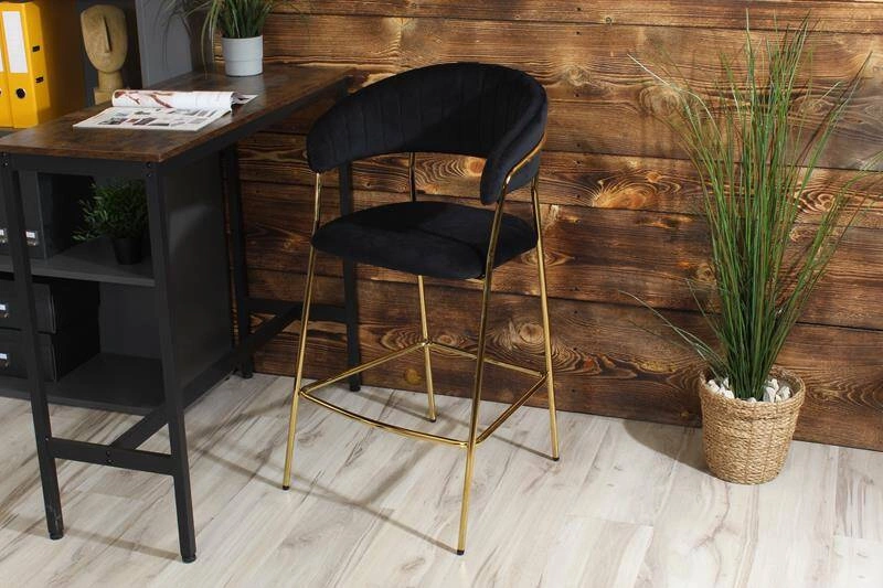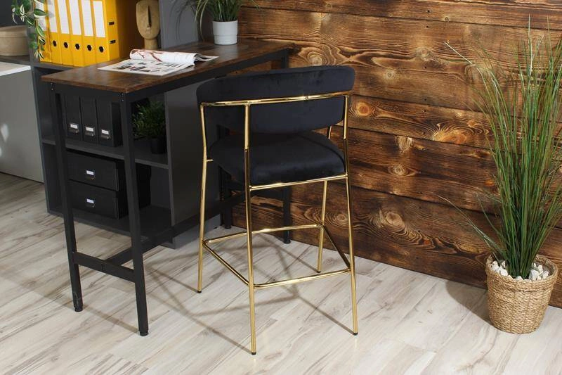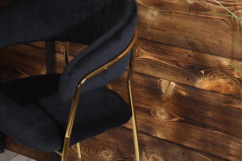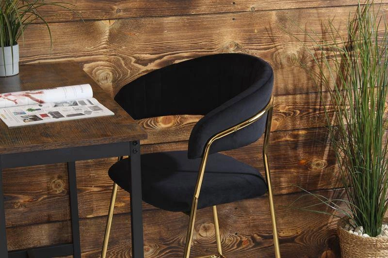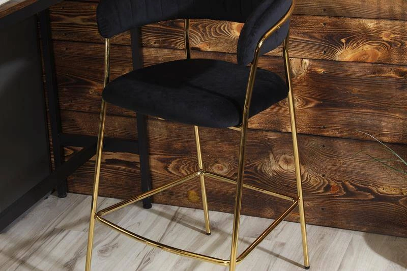 Krzesło barowe w stylu glamour MARGO czarny welur /złoty