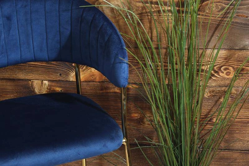 Złoty, chromowany stelaż podkreśla elegancki charakter modelu MARGO i doskonale kontrastuje z granatową tapicerką, tworząc harmonijne zestawienie kolorystyczne. Stabilna konstrukcja i odpowiednio wyprofilowane siedzisko gwarantują wygodę, dzięki czemu krzesło sprawdzi się zarówno w codziennym użytku, jak i podczas spotkań towarzyskich.