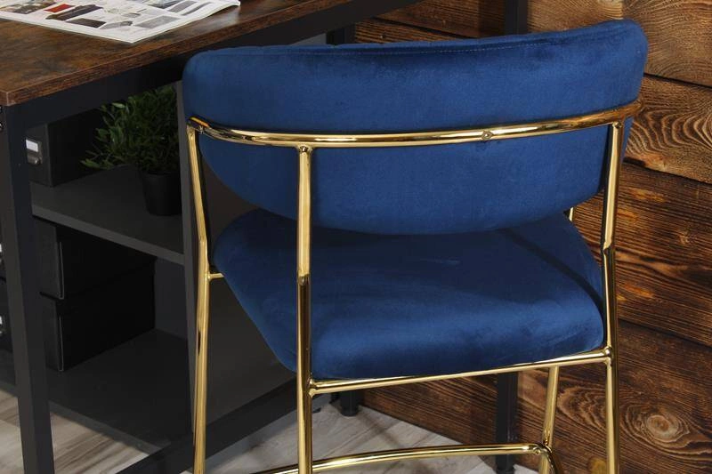 Eleganckie krzesło barowe w stylu glamour MARGO granatowy welur /złoty