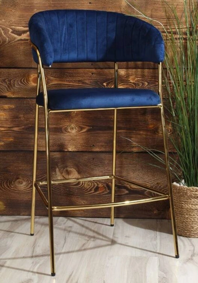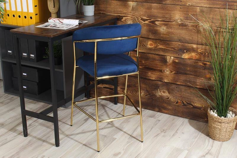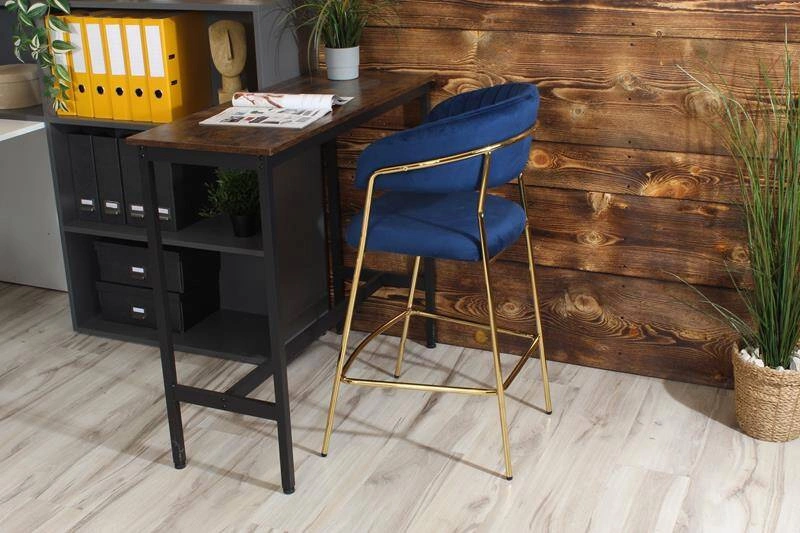 Krzesło barowe w stylu glamour MARGO granatowy welur /złoty