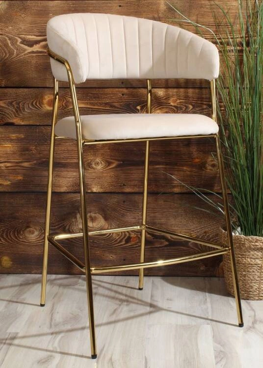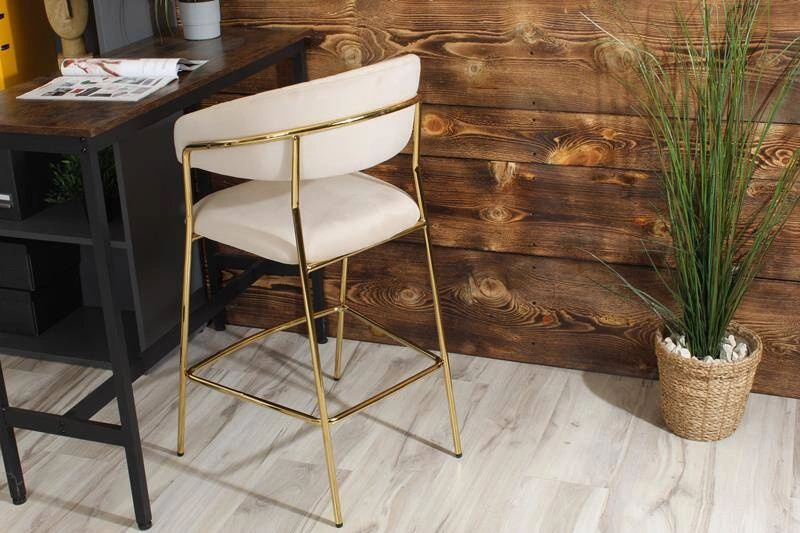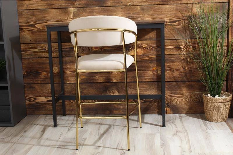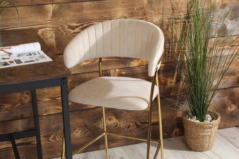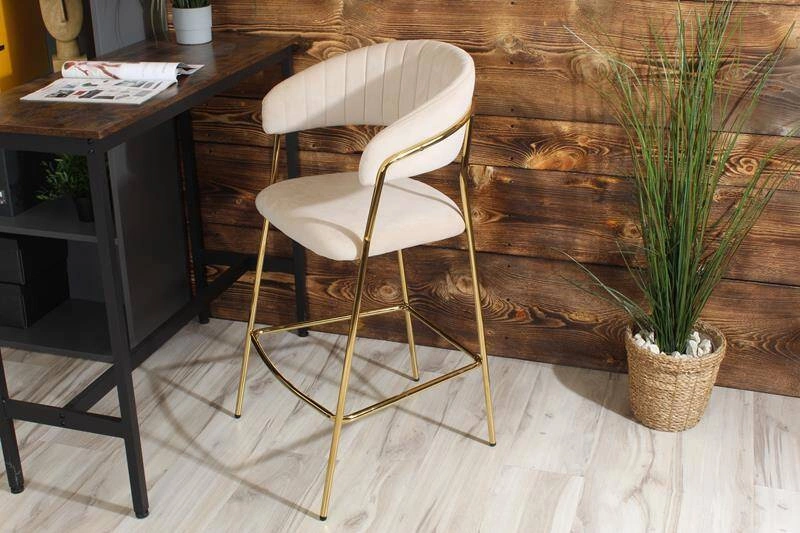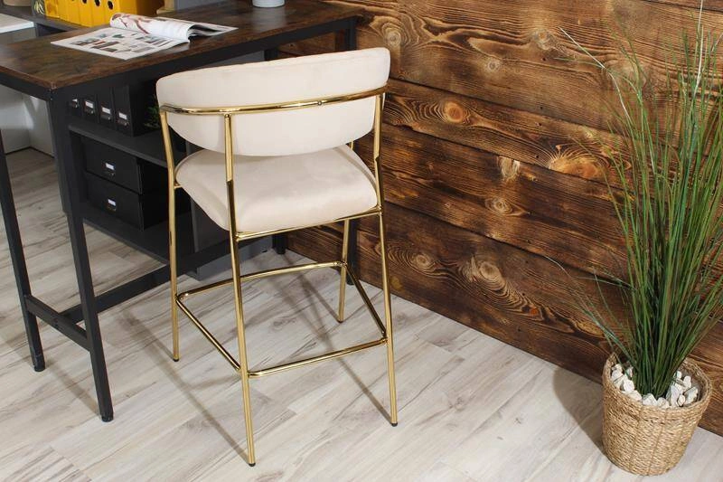 Krzesło barowe w stylu glamour MARGO beżowy welur /złoty