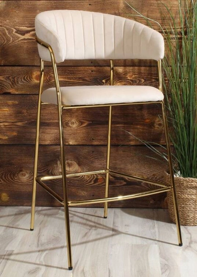 Eleganckie krzesło barowe w stylu glamour MARGO beżowy welur /złoty
