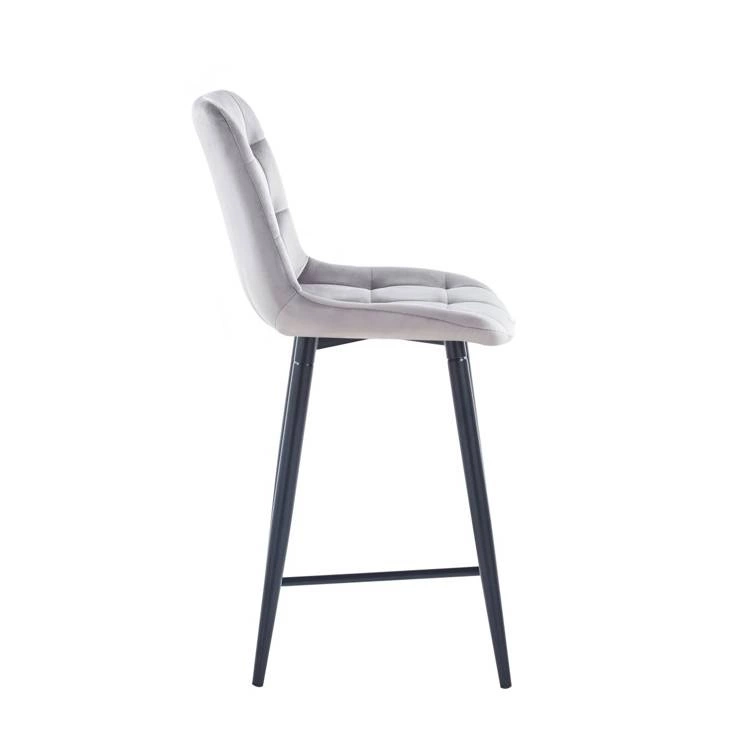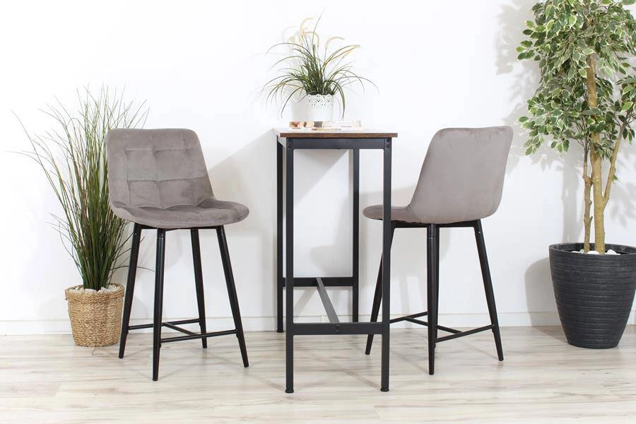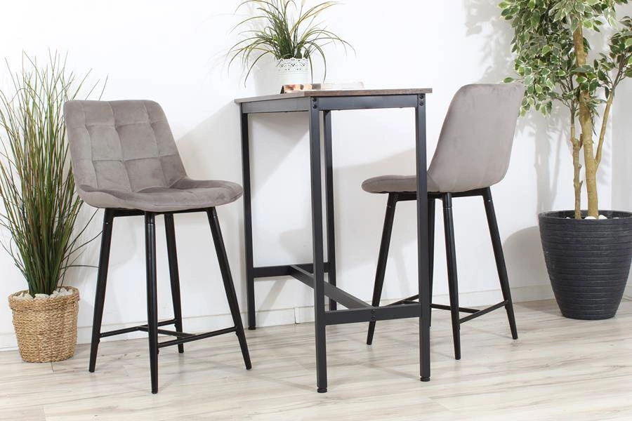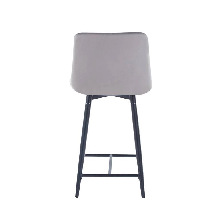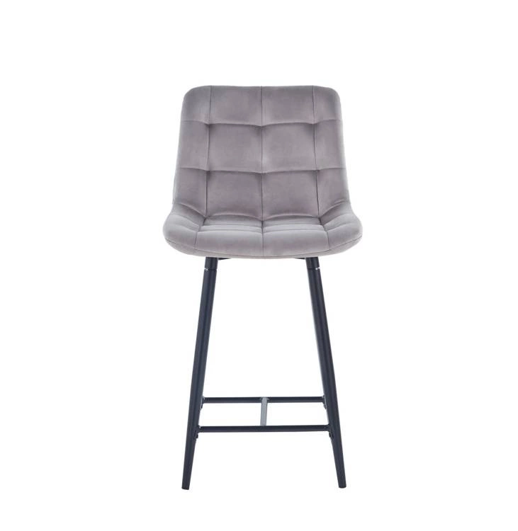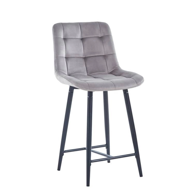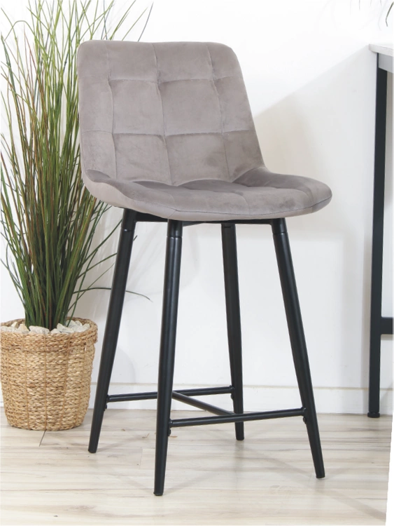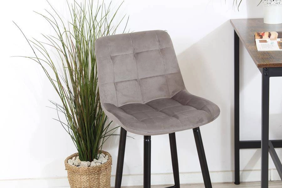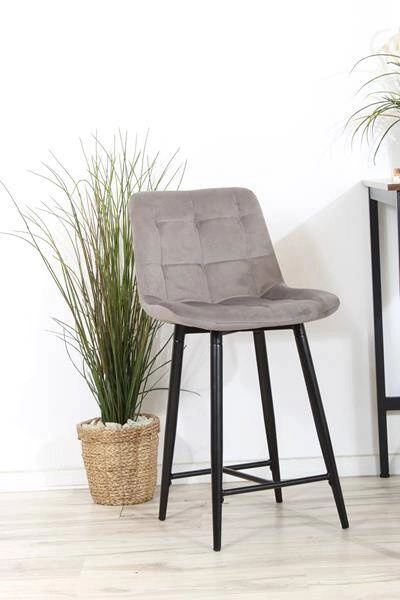 Welurowe krzesło do wyspy niskie PROXI pikowane szare na czarnych nogach