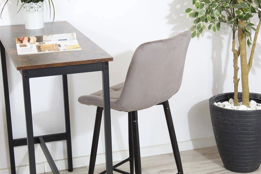 Eleganckie niskie krzesło barowe PROXI I pikowane z szarego weluru na czarnych nogach