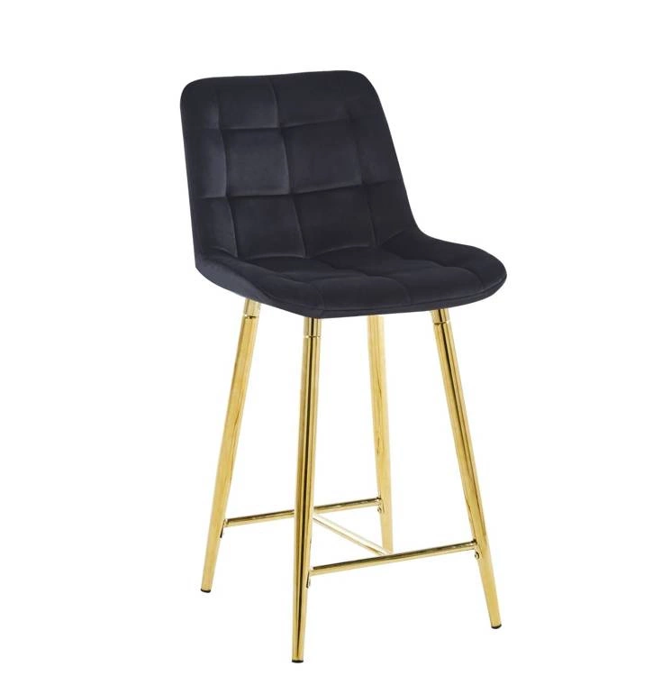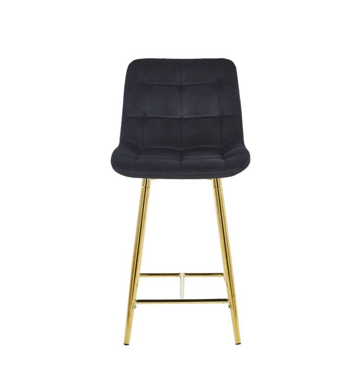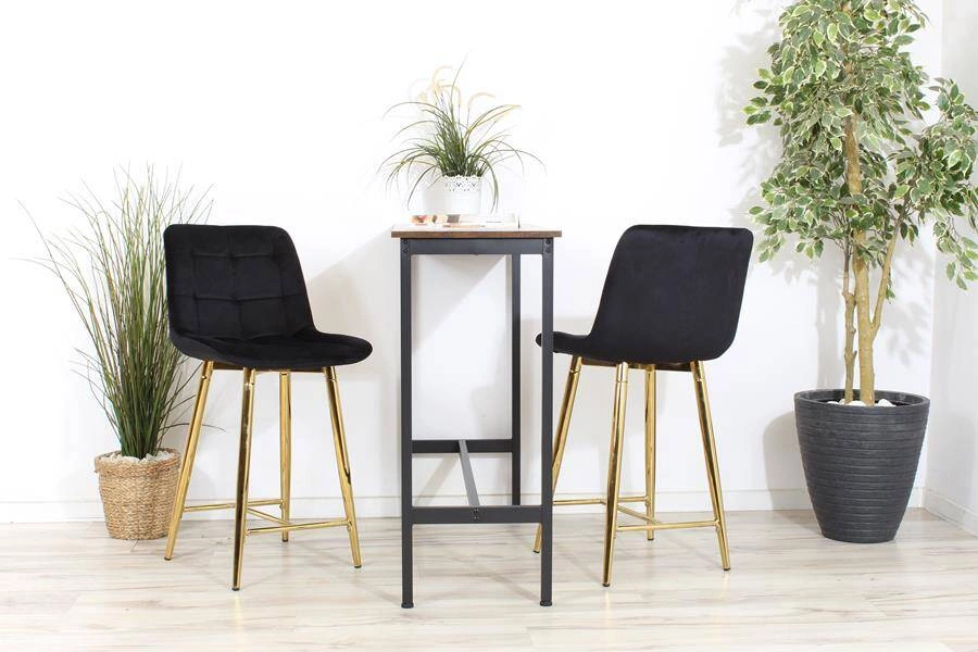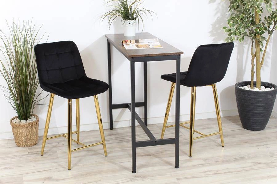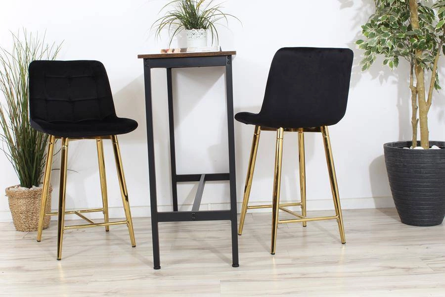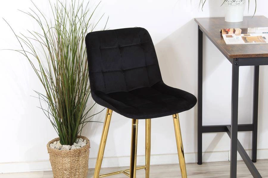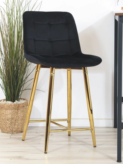 Opinie o Welurowe krzesło barowe niskie PROXI pikowane czarne na złotych nogach
