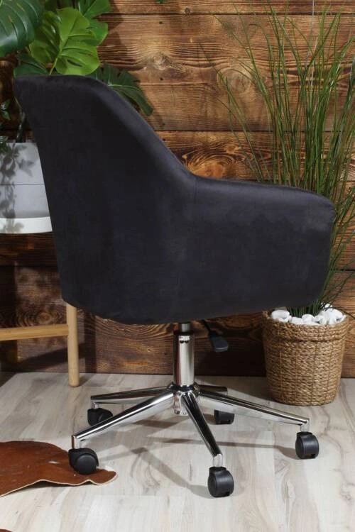 Wygodny fotel z weluru do biurka FABIO czarny ze srebrną podstawą