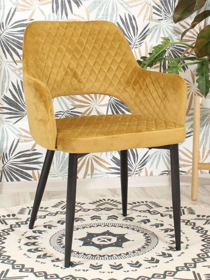 Wygodne krzesło do jadalni z podłokietnikami FRANCO B miodowe na czarnych nogach