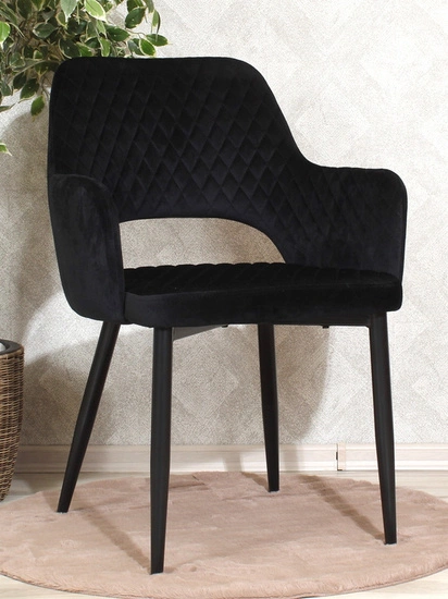 Wygodne krzesło do jadalni z podłokietnikami FRANCO B czarne na czarnych nogach