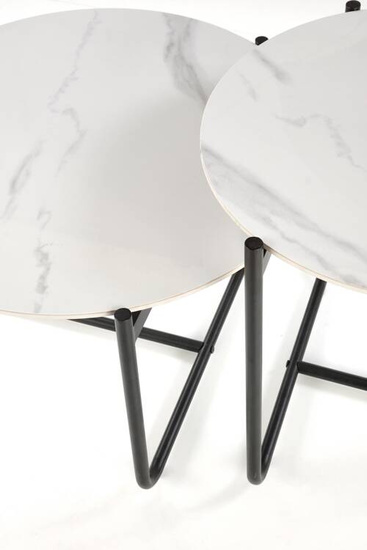 Elegancka Ława ACUNA z Blatem Biały Marmur na Czarnym Stelażu