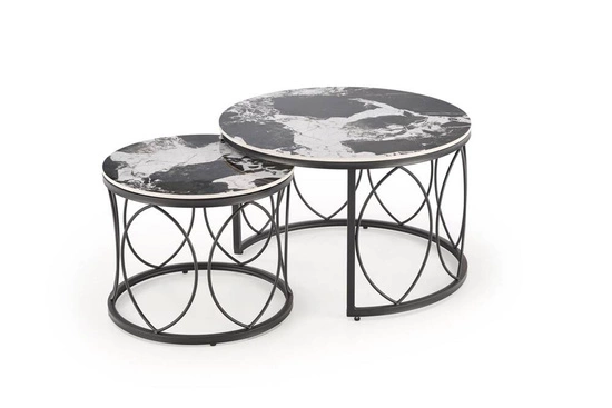 - Zestaw 2 ław ALEXANDRA z blatami z czarnego marmuru i czarnym, malowanym proszkowo stalowym stelażem to idealne połączenie klasycznego i nowoczesnego designu.