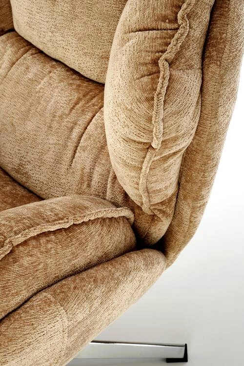 Fotel GUIDO został wykonany z wysokiej jakości tkaniny w musztardowym kolorze. Tkanina jest miękka i przyjemna w dotyku, co sprawia, że fotel jest doskonałym miejscem do relaksu.