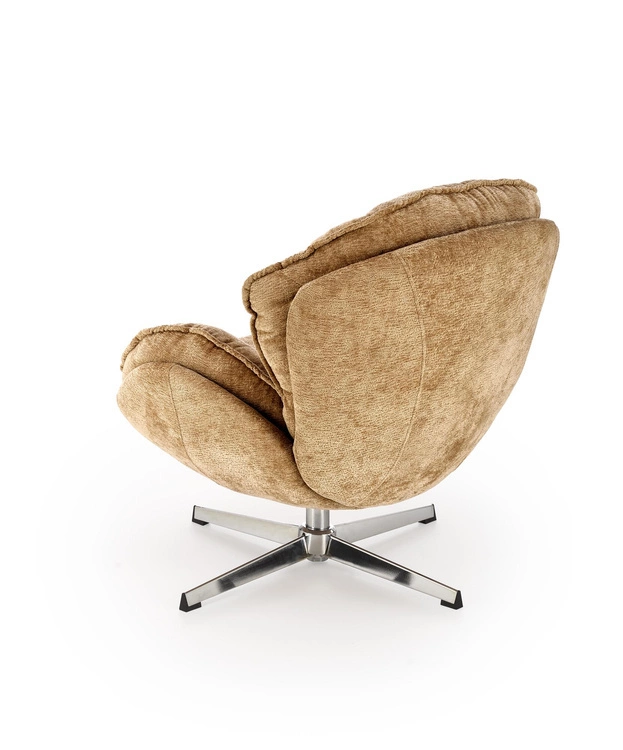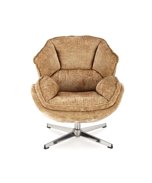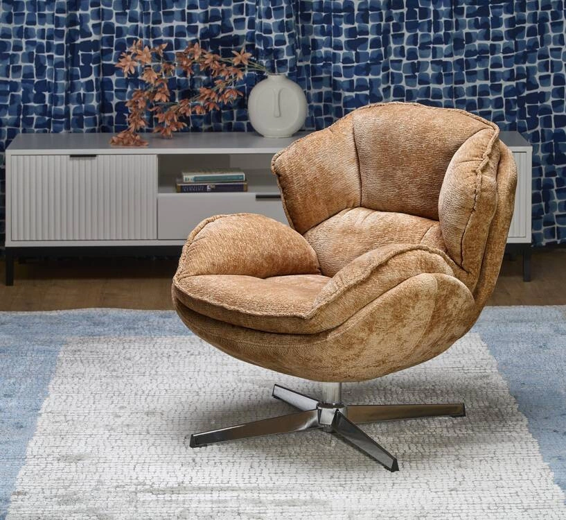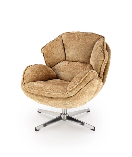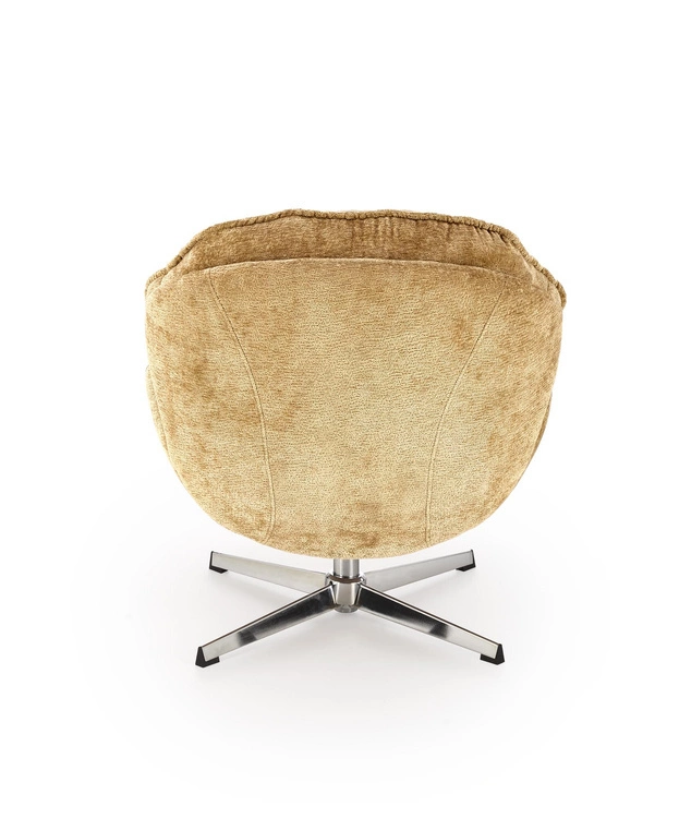 - Fotel GUIDO z tkaniny w kolorze musztardowym oraz podstawy z chromowanej stali. Elegancki i komfortowy, doskonały do salonu, gabinetu lub biura.