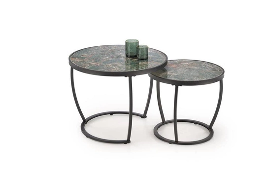 Zestaw 2 ław INES z zielonym marmurowym blatem i czarną metalową podstawą