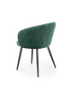 - Krzesło K430 to połączenie elegancji i komfortu. Tapicerowane tkaniną velvet w kolorze ciemnej zieleni, z pikowanym oparciem i czarnymi, malowanymi proszkowo nogami. Idealne do salonu, jadalni lub gabinetu.