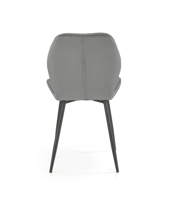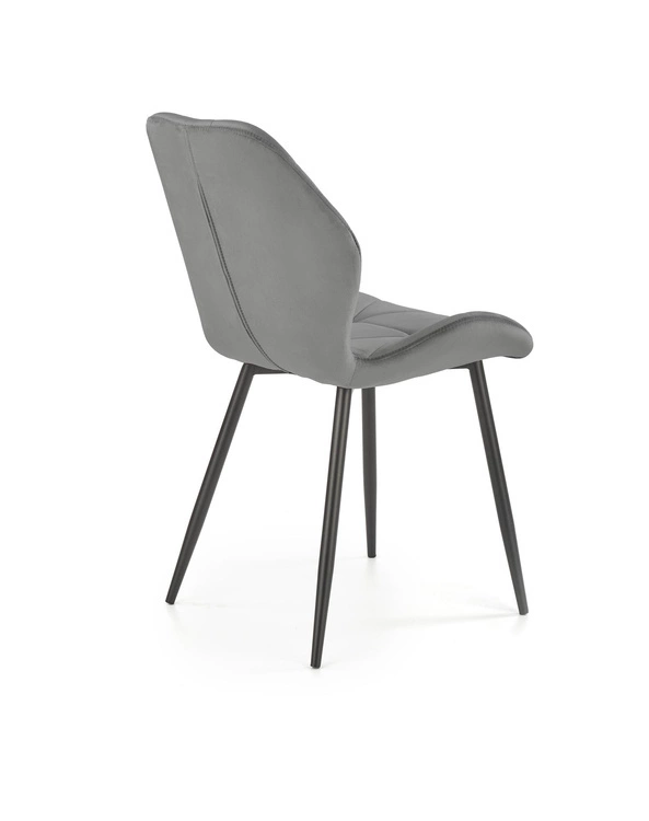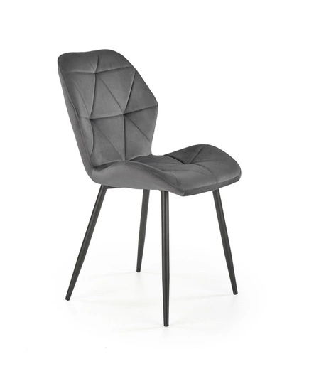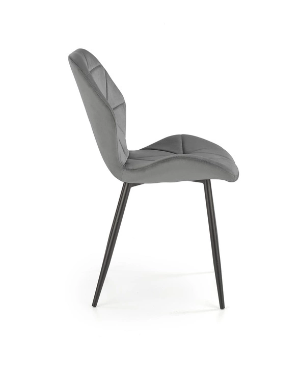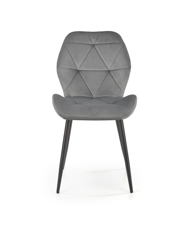 - Krzesło K453 w kolorze popielatym (BLUVEL 14) z tkaniny velvet oraz nogami z czarnej stali malowanej proszkowo. Nowoczesny design i geometryczne pikowanie. Doskonale sprawdzi się w różnorodnych aranżacjach, zarówno klasycznych, jak i nowoczesnych.