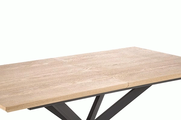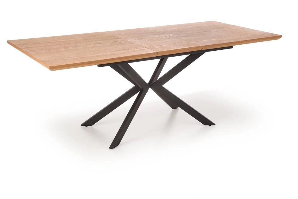Stół rozkładany LEGARTO z blatem w kolorze naturalnego dębu i czarnymi nogami